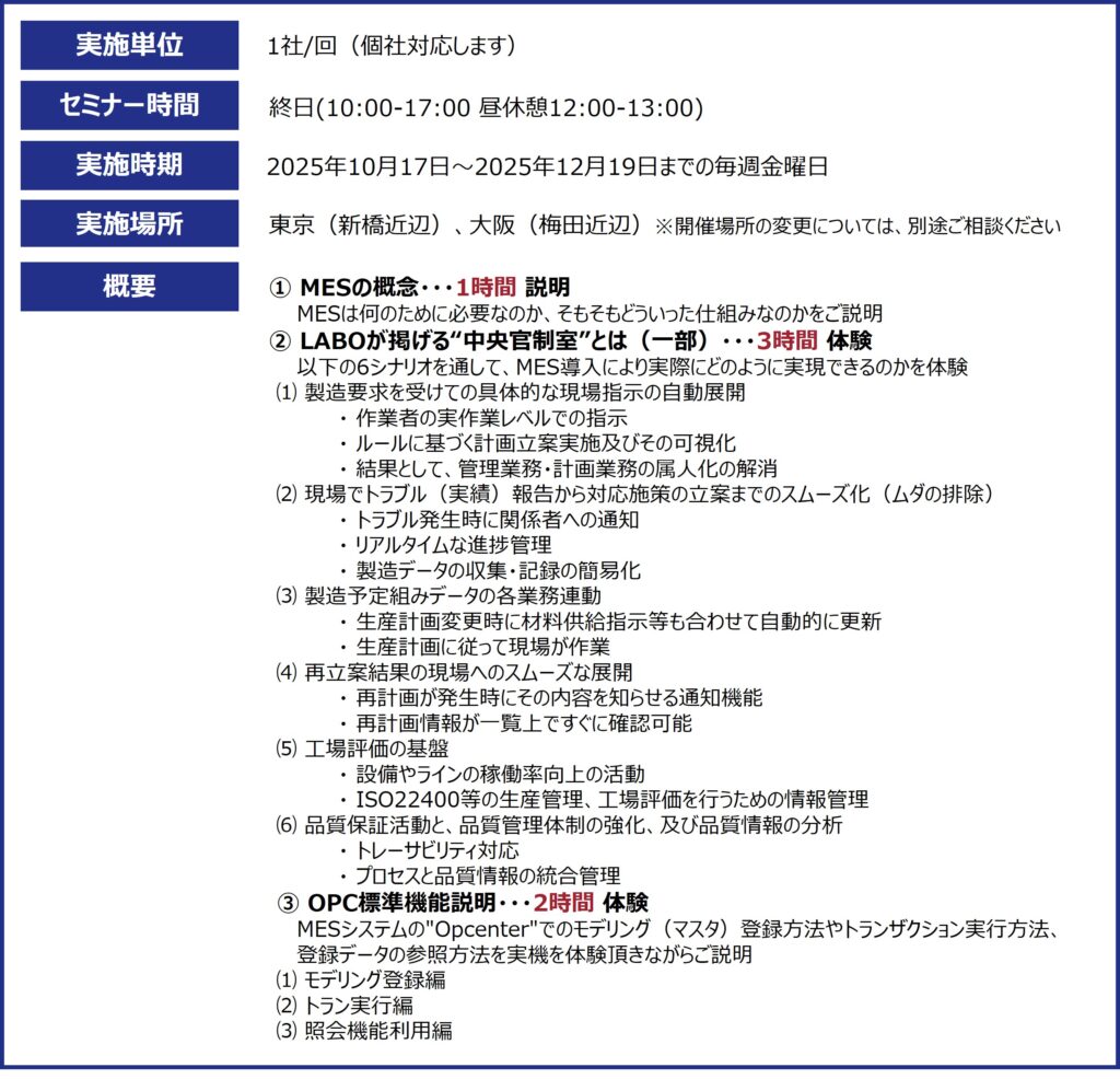 本気でMES導入を検討されているお客様は、本ワークショップに是非ともお申込みください。