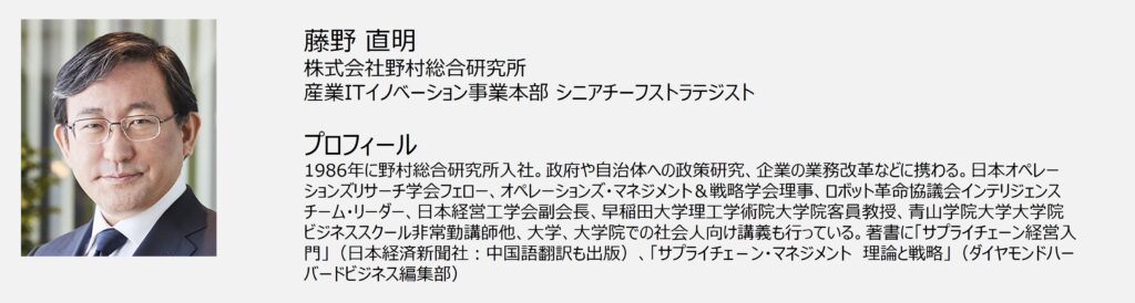 基調講演には、企業の業務改革やDX・第4次産業革命などへの見識が深い、野村総合研究所の藤野 直明氏をお招きし、工場DXを経営課題と捉えたときにマネジメント層がどのように向き合うべきかについてお伝えします。
